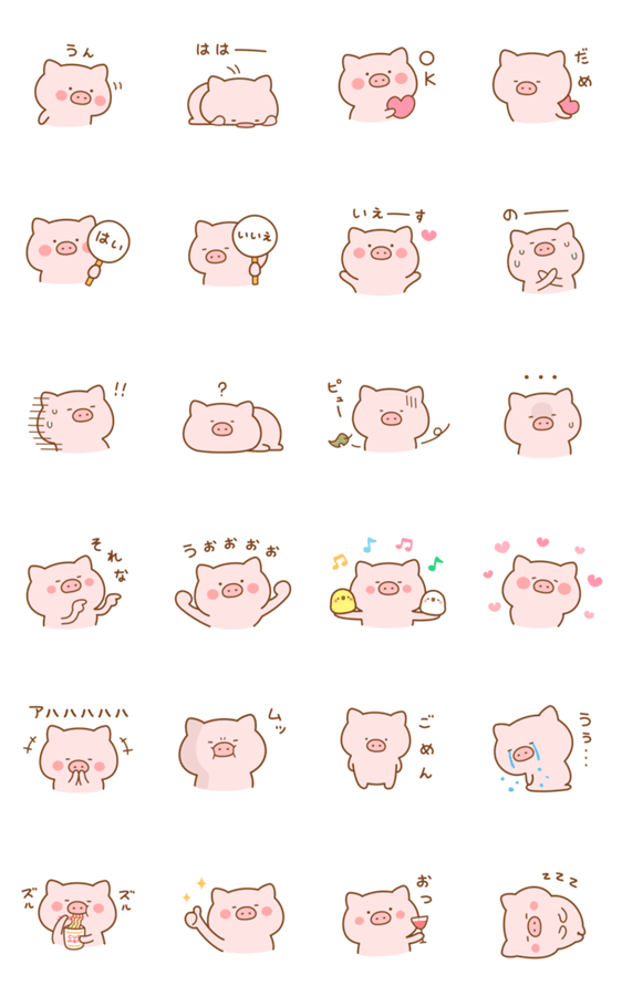 つぶらな瞳で語りかけるこぶた「ぶたたん」のスタンプ第十三弾です。