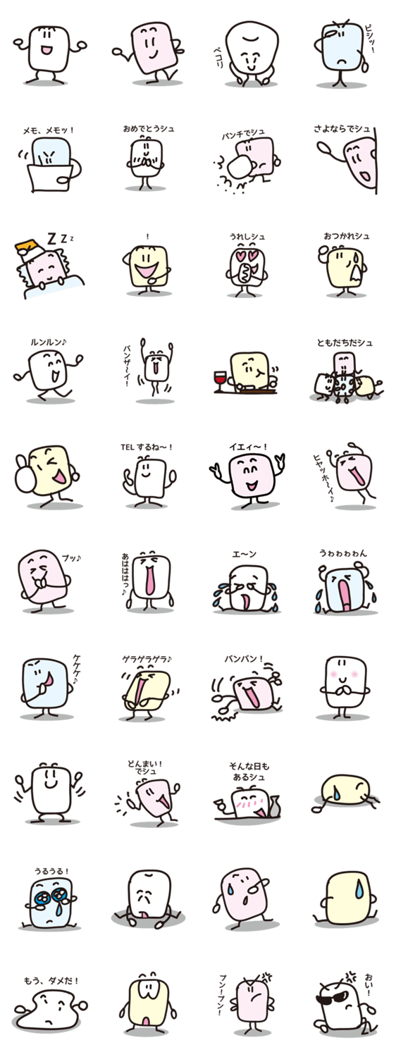 とっても甘くてスイートなマシュマロ達をゆる〜く喜怒哀楽表現してみました。