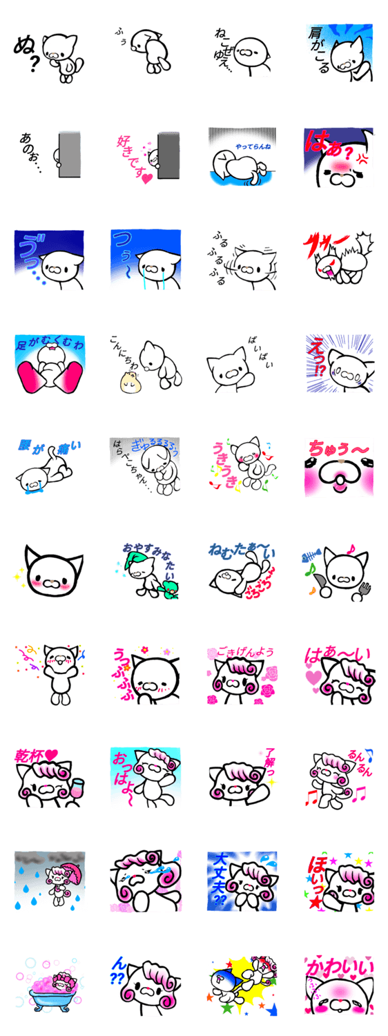 猫背の猫瀬と、かわいいサシコ。日常使える感情や挨拶につかえます。肩こりや腰痛の方にもお勧めです。
