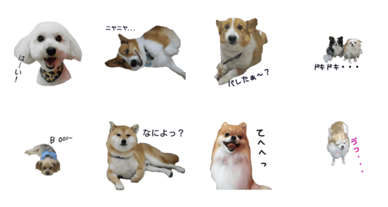 色んな表情を見せる可愛いワンちゃん達の実写スタンプです。