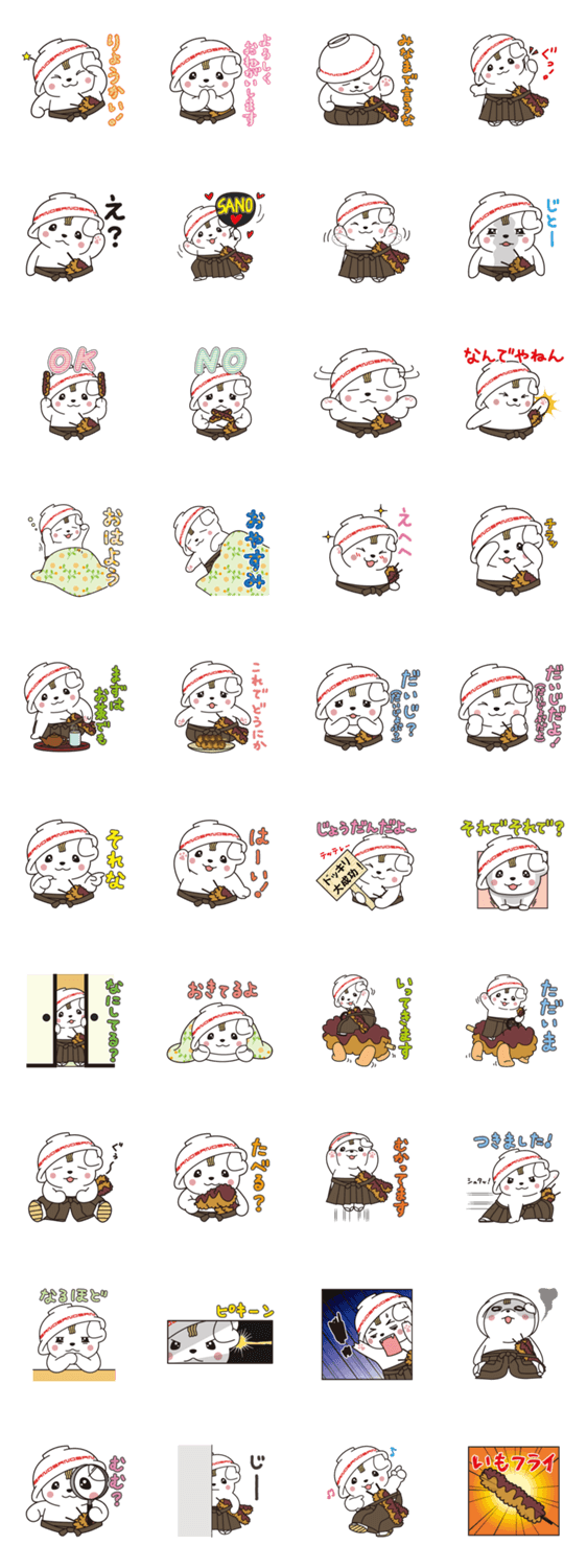 佐野らーめんのお椀の笠に、いもフライの剣をさした佐野の城下町に住む侍「さのまる」のスタンプ第2弾が登場!