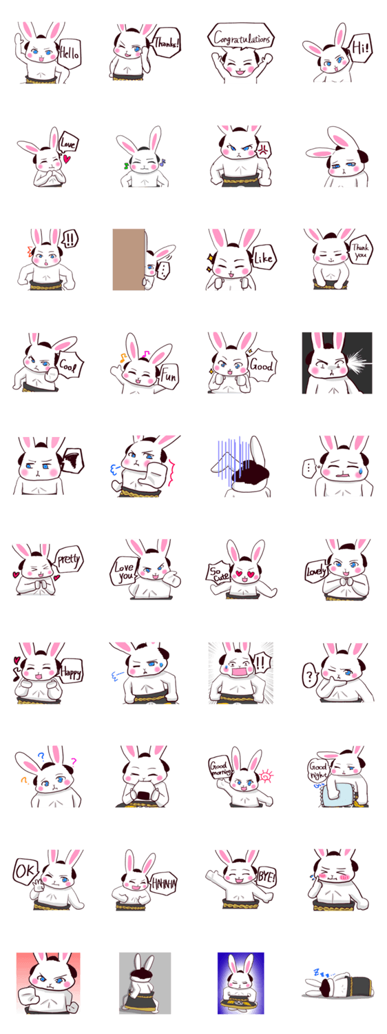 | スタンプ説明 | 青い目の相撲取り。彼の名前はライデン。家紋の中心にはハート。長男、武蔵。二男、半蔵と共に、地球をむしばむ「悪」を退治する。-SUMO WRESTLER Rabbit RAIDEN / JAPAN- |