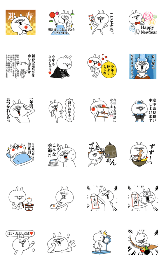 顔芸うさぎ 年賀&年末年始ver -LINEスタンプマニア