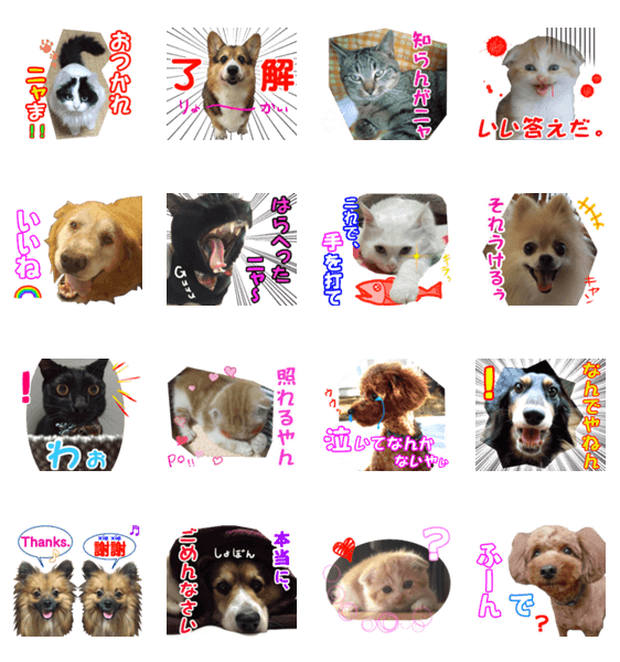 かわいい犬や猫などのペットたちが、あなたの気持ちを代弁いたします。