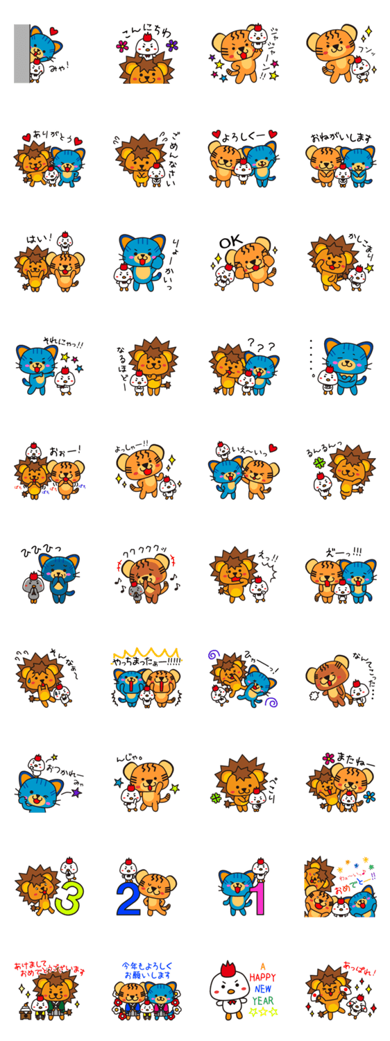 酉年だから現れたこのコはトリなの?トリじゃないの?!ことらいおんシリーズにちょっと怪しい「とりら」が登場!!お正月の挨拶はもちろん、一年中使えるスタンプです☆