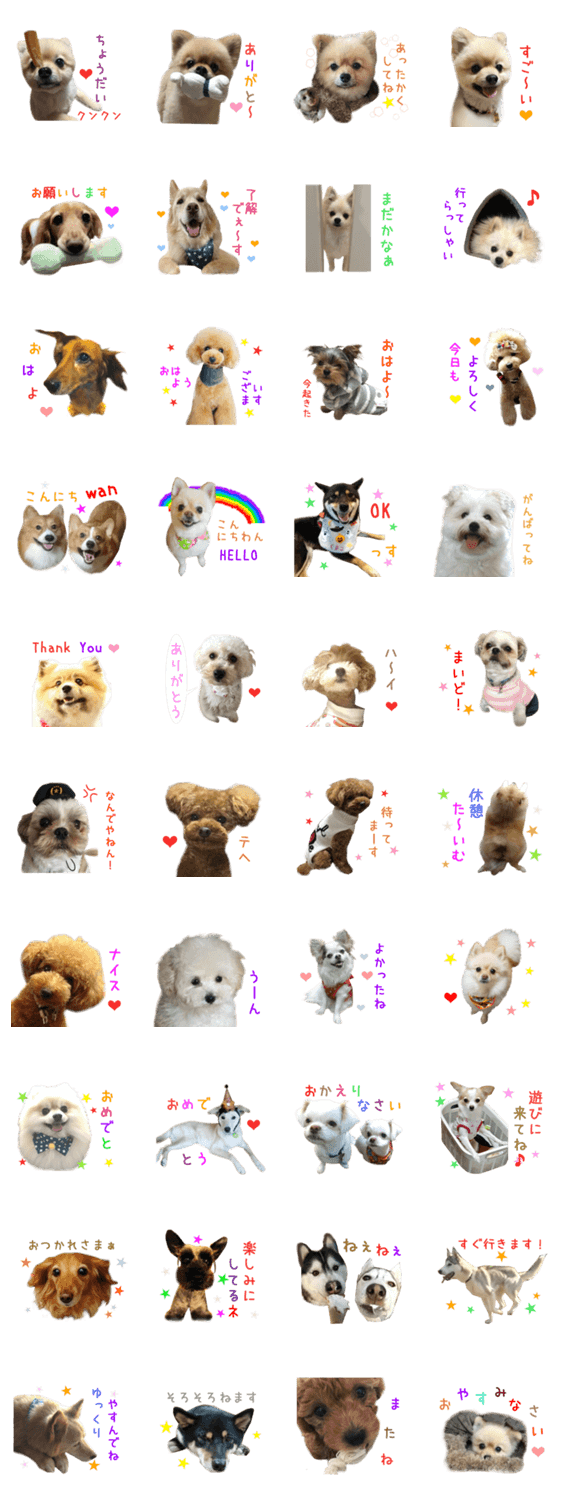 リアルなわんちゃんたちのスタンプが登場しました☆ ポメラニアン・トイプー・チワワ・ダックスフントなどいろんな犬のスタンプでお楽しみください☆