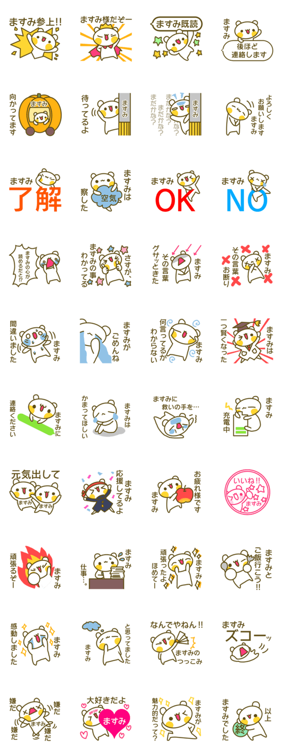 (真澄、眞澄、益美、真純、増見、真清、ますみ)さんのお名前スタンプ