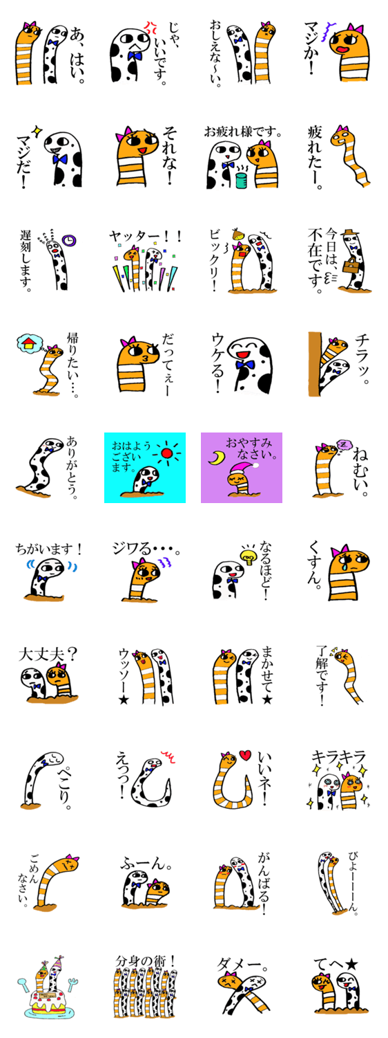 チンアナゴのチンアナくんとニシキアナゴのニシアナちゃんカップルのわかりやすく、かわいいスタンプ。