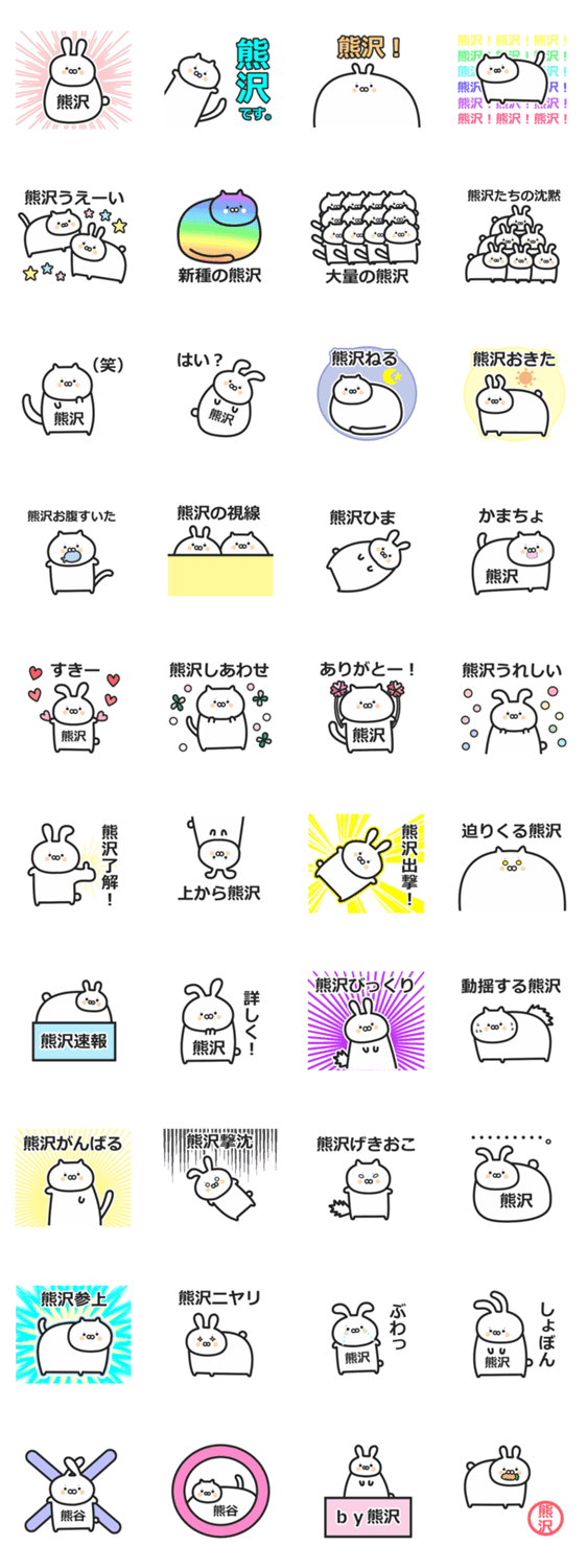 全国の熊沢さん専用☆眉毛がついたうさぎ☆まゆ毛ウサギまゆ毛ネコの名字スタンプです☆熊沢さん苗字スタンプ♪