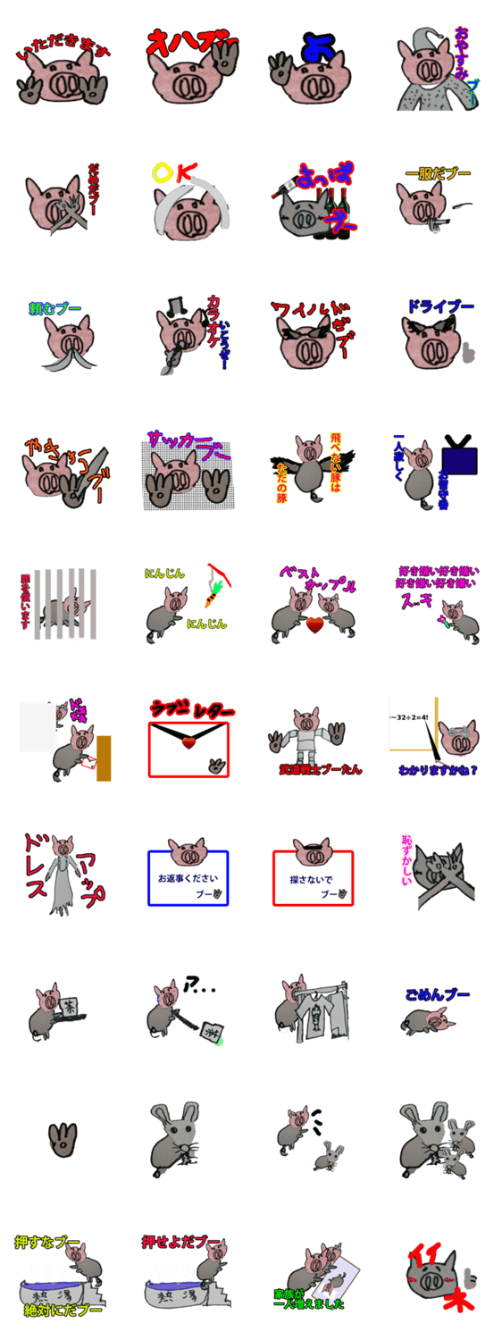 カワイイ豚のスタンプです。ゲスト、ネズミ・トリ