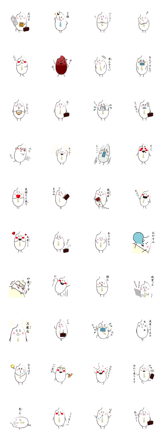 日本と言えばやっぱり米。 日本の一般サラリーマン、米田君のスタンプです。
