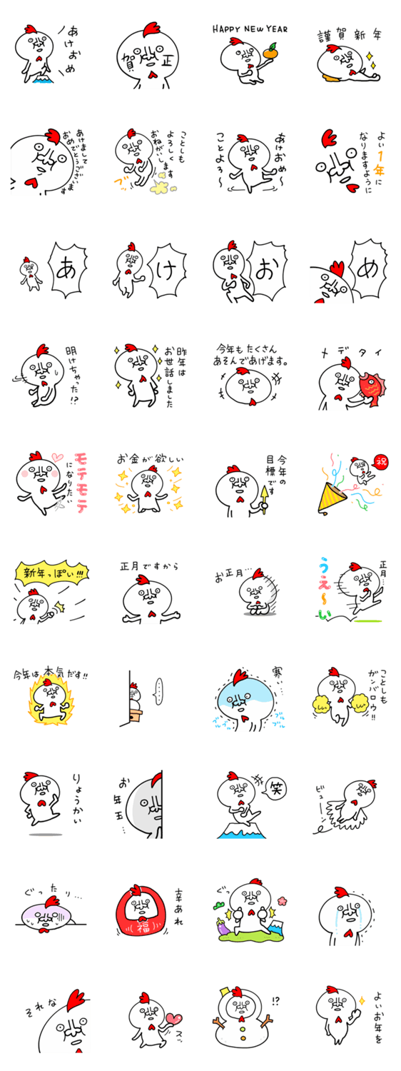 お正月に使えるぶさいくなニワトリ人間スタンプです。