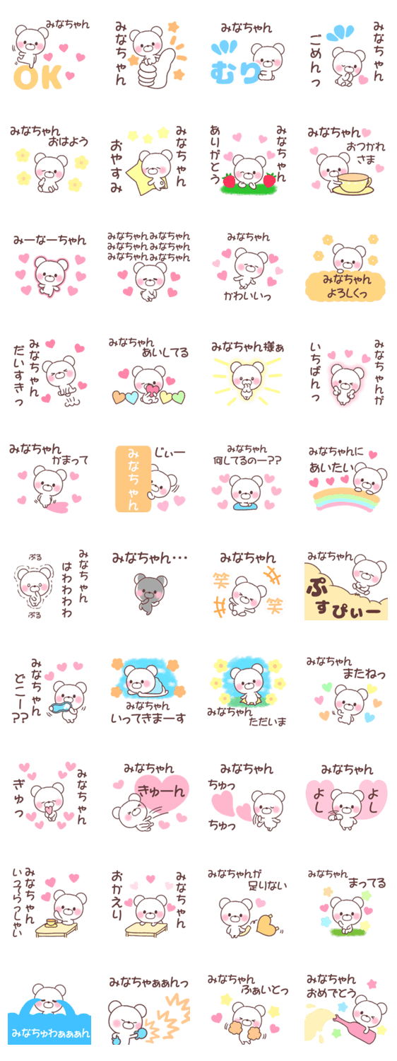 みなこ,みなよ,みなみ,みなと等へ送るかわいいゆるーいしろくまあだ名スタンプ♡彼氏彼女ラブラブカップル友達家族夫婦が使う♡