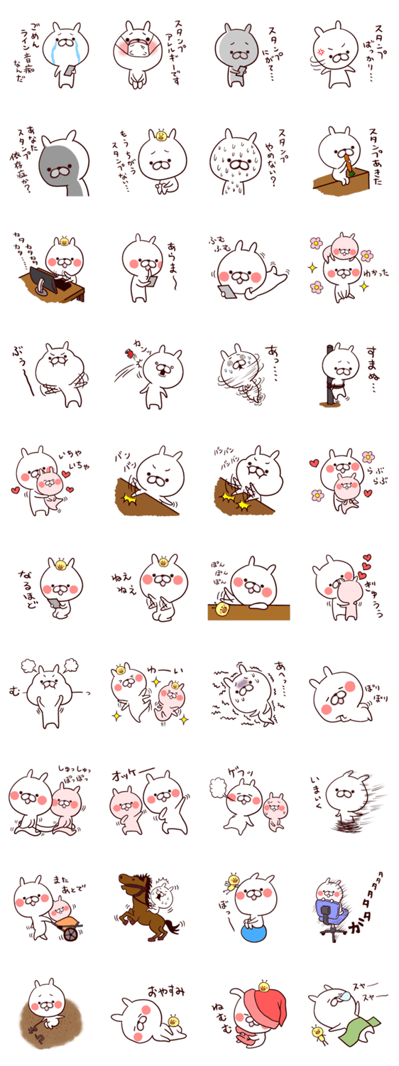 白く、ゆるく、可愛い、うさぎのスタンプ4。
