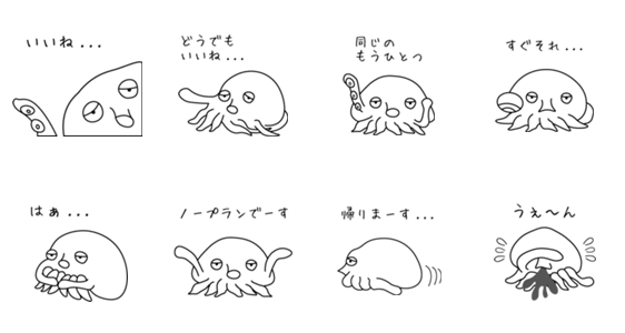 しょぼくて、しょんぼり、しょげかえった、タコです。 小心、傷心、意気消沈。