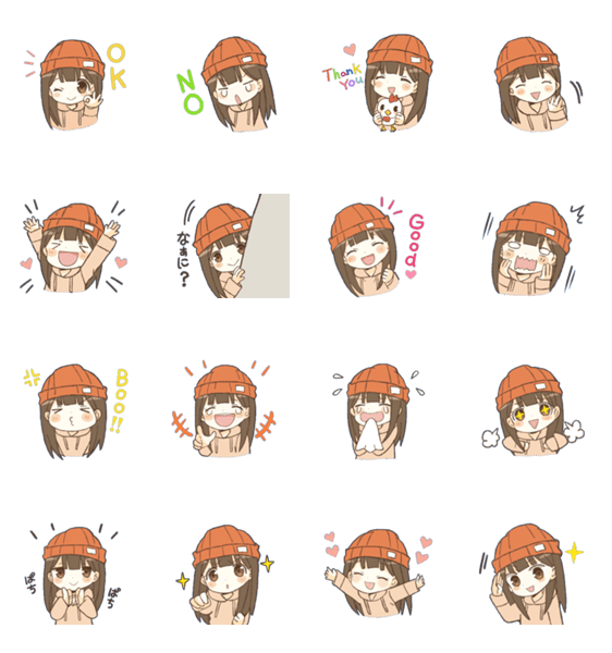 ニット帽がチャームポイントの可愛い女の子スタンプです。