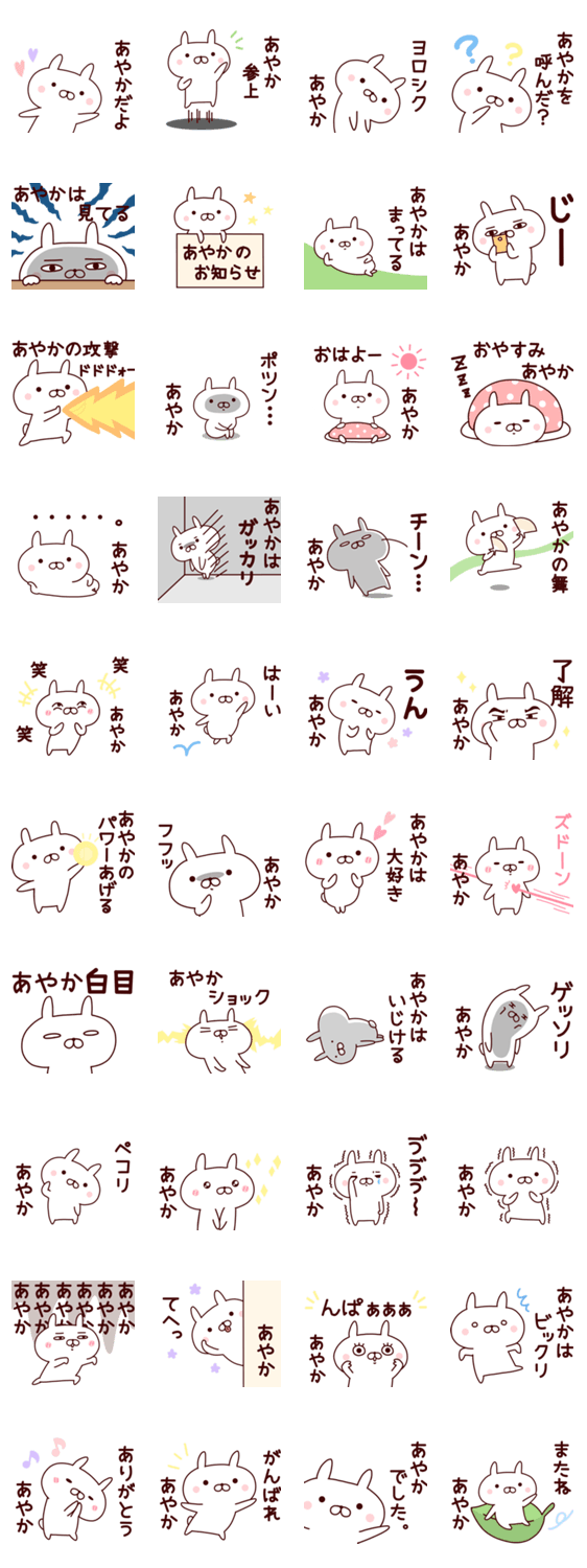 名前に【あやか】が付く人専用。あやかちゃんスタンプです。よく使う言葉を多めにしました。プレゼントしても面白い。楽しく使ってね♪
