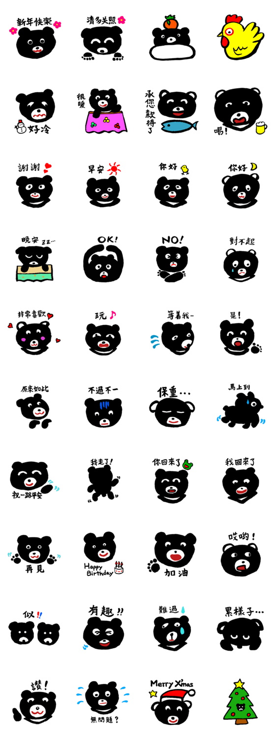墨筆で書いた黒熊です。毎日使える会話と冬に使えるスタンプです。
