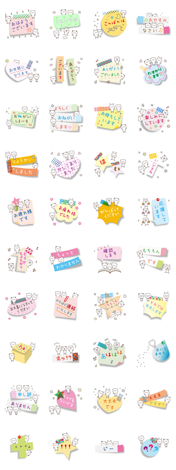 ふせんにかわいいマスキングテープ。ラブリーで小さな動物さんたちがメッセージをふんわり敬語で届けます。