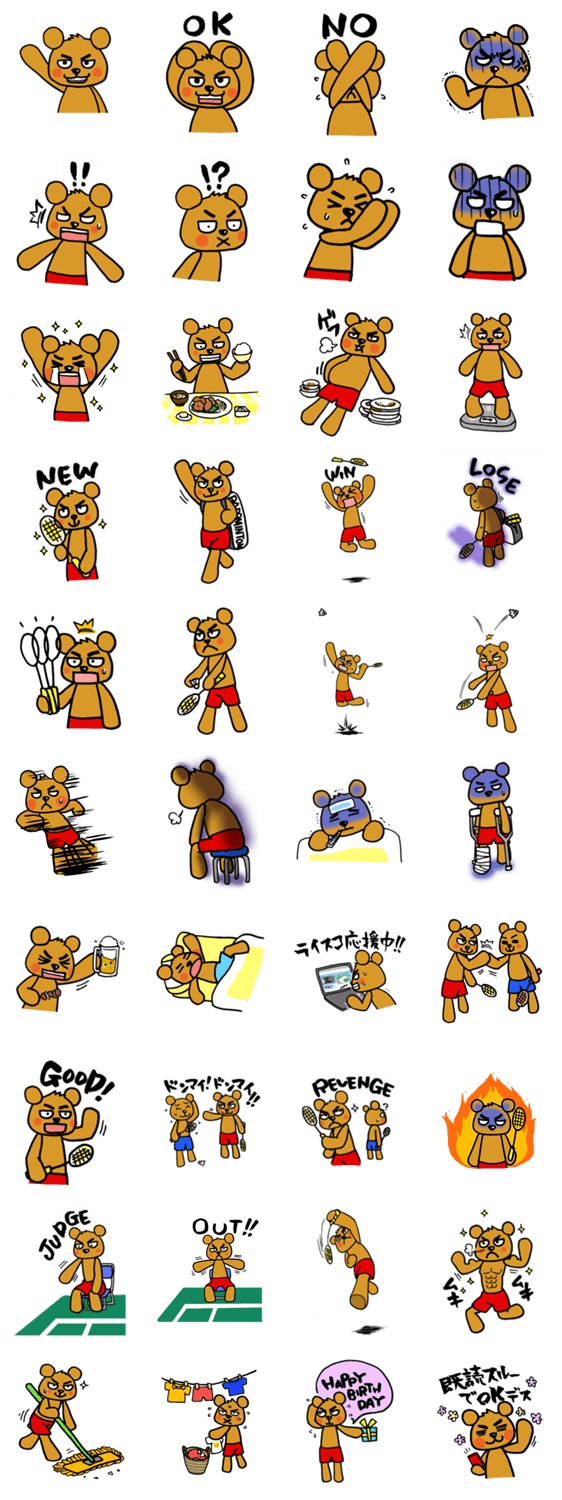 バドミントン大好き「くまゴロー」。すべてのバドラーに送るバドラーのためのスタンプです。Let’s enjoy life badminton!