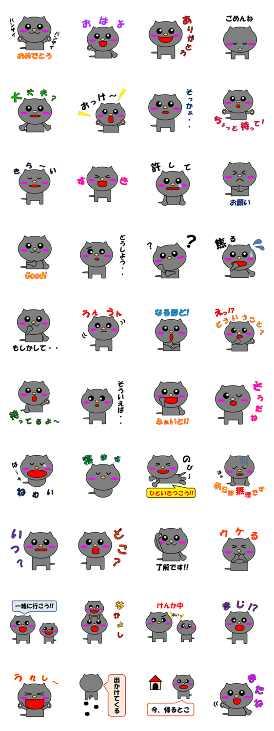 大きな目が特徴のねこちゃんです。 日常会話につかえるものばかりです!