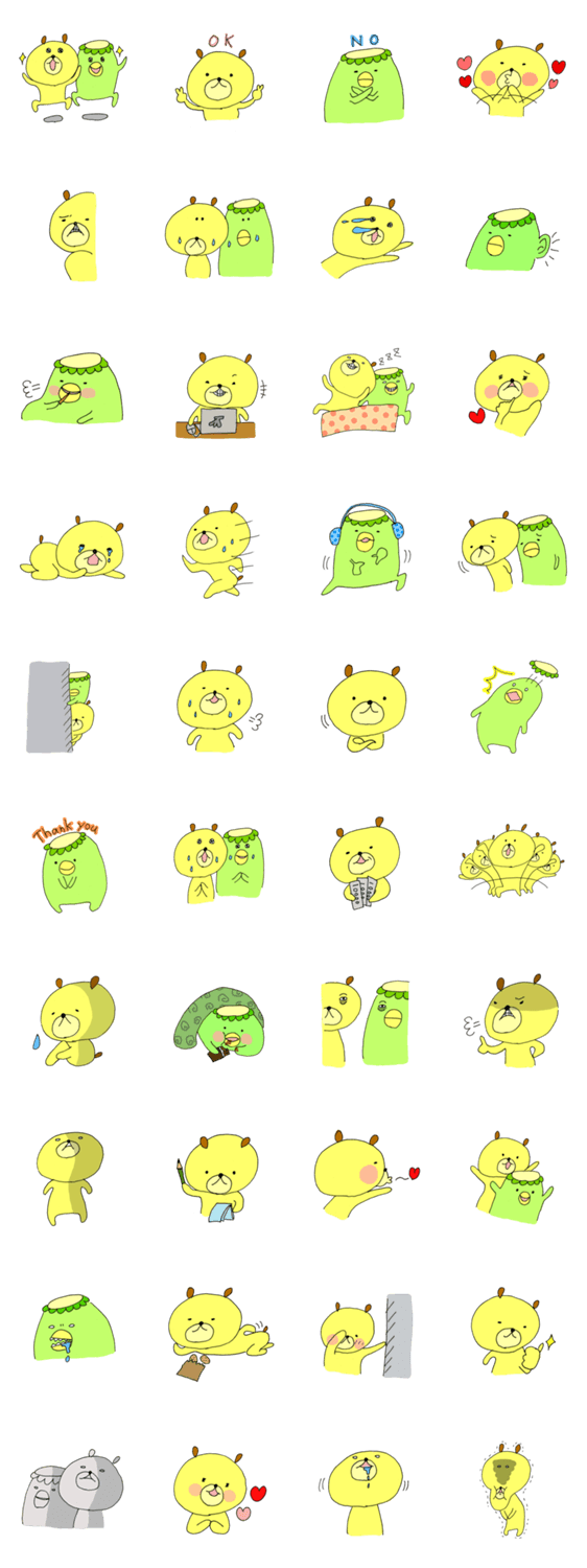 長所は胴、短所は手足の、2匹のぬいぐるみの日常生活のスタンプです。