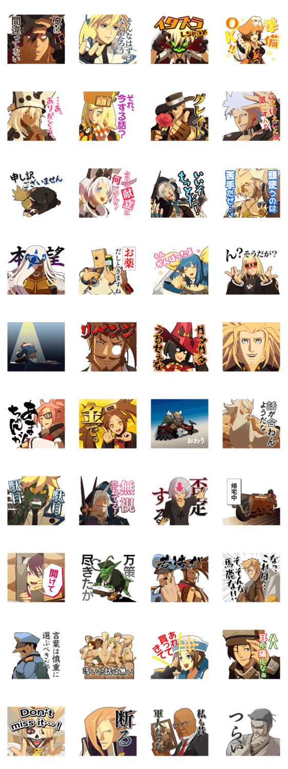 格闘ゲーム「GUILTY GEAR Xrd」の第2弾公式ラインスタンプが登場!REVELATORで登場した新キャラクターも追加されて、コミュニケーションもますます楽しくなりました!