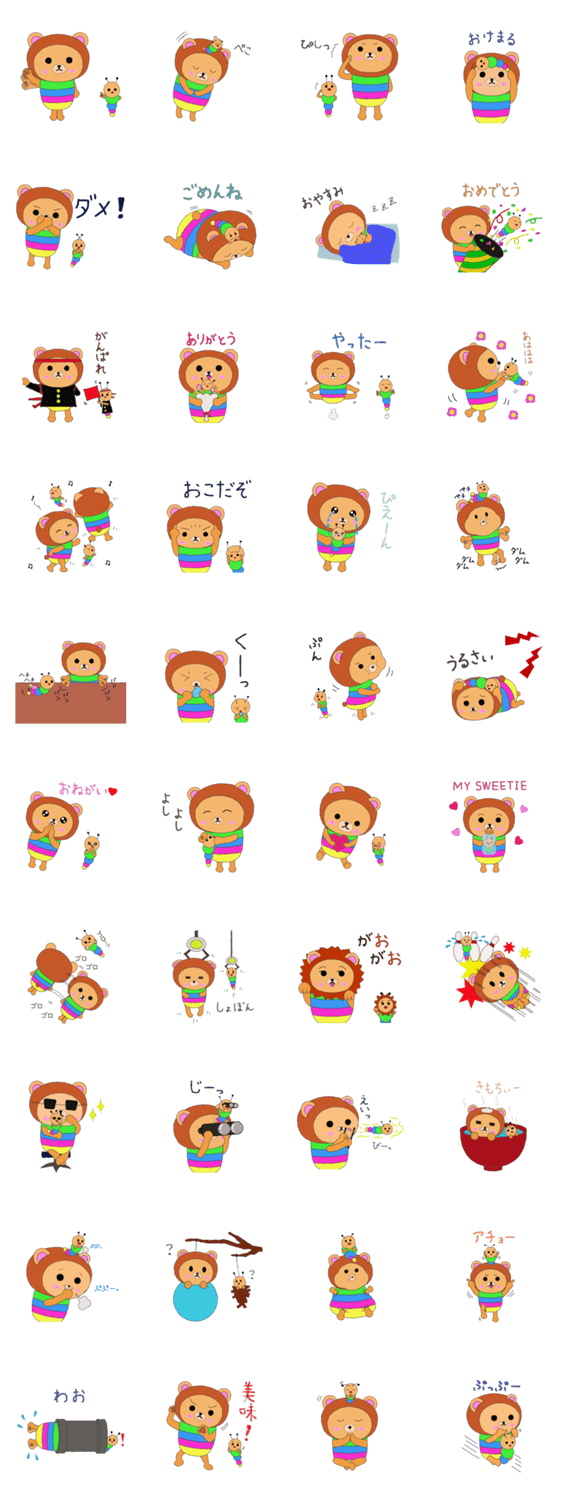 いつも一緒で仲良しな2匹。2匹合わせてその名も、いもむしくまたん。かわいくて、使いやすいスタンプです。
