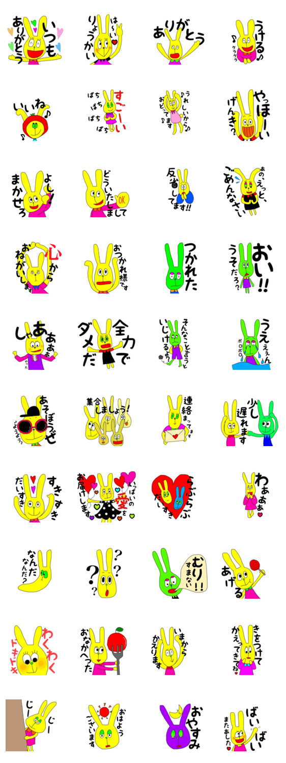 使いやすい日常会話のスタンプです。 カラフルなうさぎがとっても可愛いです。