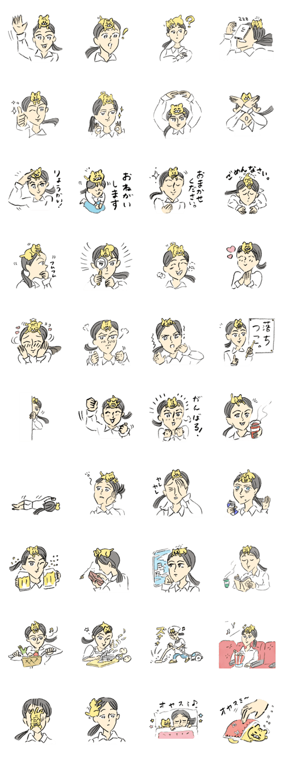 なついた子ネコが離れません。そして生活は続きます。よく使う仕草が揃った「子ネコのせ子」スタンプ!