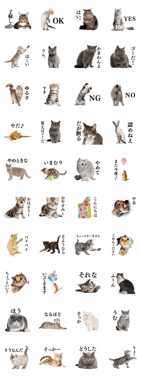かわいいネコ達のリアルで面白い写真スタンプです。日常で使える便利さがあります。日本人の多くが好きな動物であるニャンコ達の可愛いリアクションが売りです。