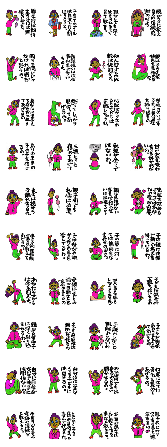 彼女は外国人のレベッカ、86歳。彼女があなたとあなたのお友達に子育てのアドバイスをくれるよ!持ってるだけでなぜか安心できるスタンプ!