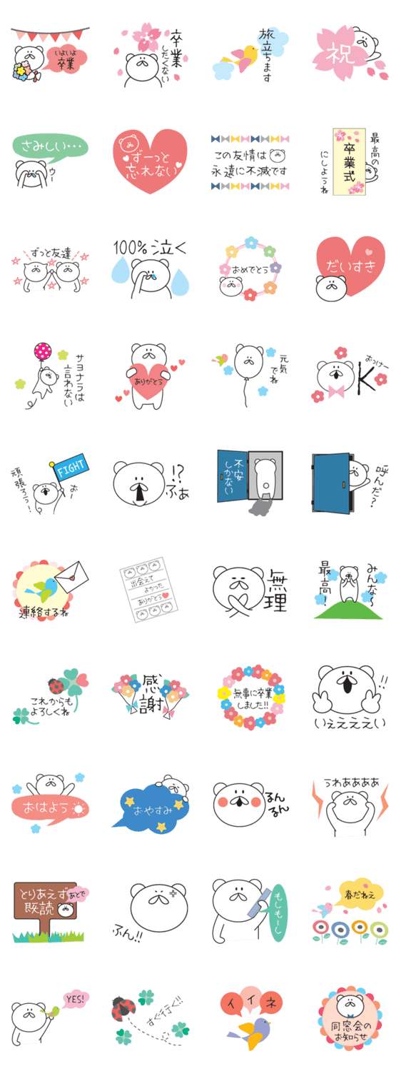 卒業のシーズンですね!小学校、中学校、高校、大学、専門学校、職場...すべての卒業式に使えます。お別れの季節もカワイイスタンプで☆白クマのスタンプです。