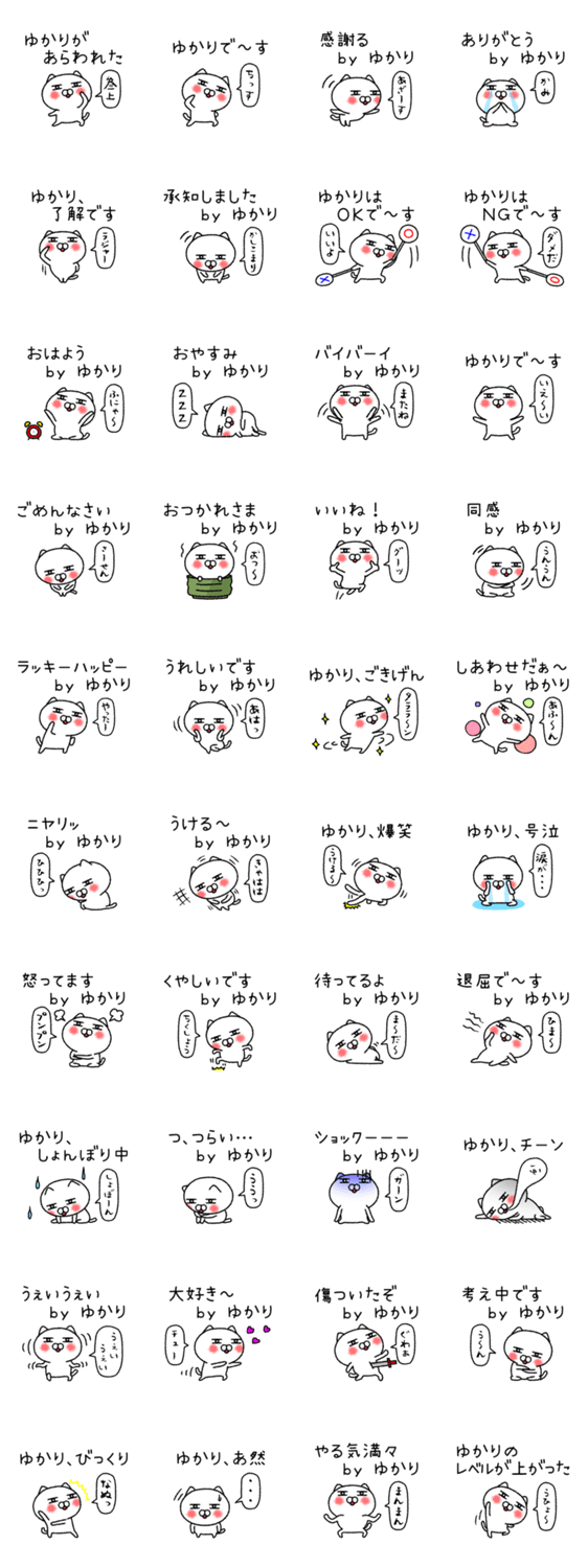 由香里、由加里、由佳里、由佳理…、全国の「ユカリ」さん専用の猫キャラ名前スタンプです。日常会話の基本セットです。「ちゃんねこシリーズ」です。