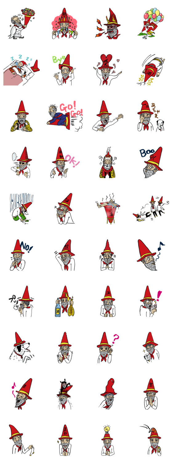コーンを愛するあまり、頭に被ってしまったおちゃめなおじさんとワンコのスタンプです。