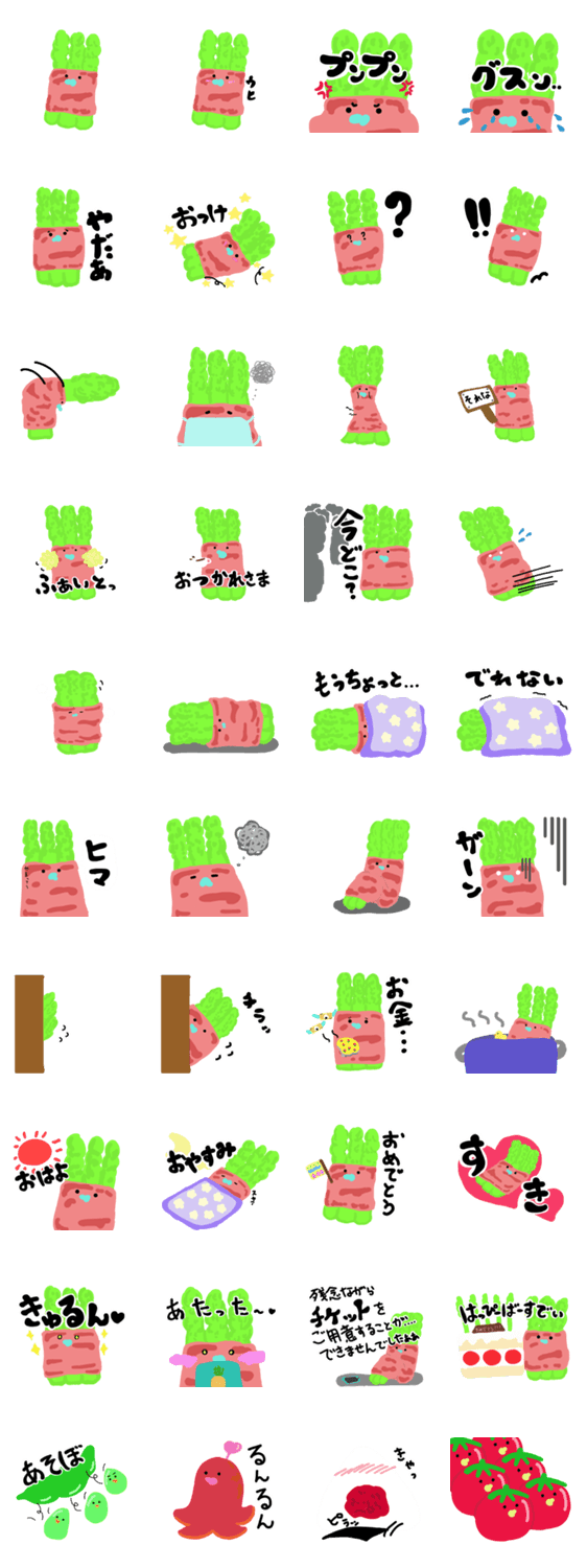 お弁当の具材のアスパラベーコンベイビー、スタンプになりました!ちょっぴりおまけで他の具材達も…!?