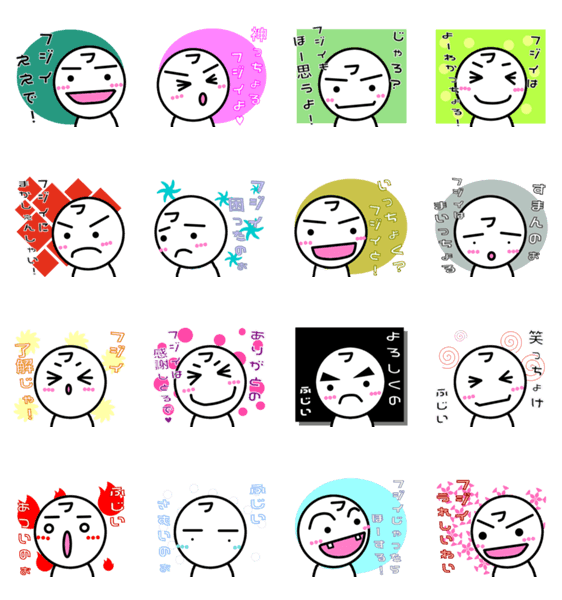 広島弁でないフジイさんも!ふじいさん、藤井さん、藤居さん、冨井さん、いろんなフジイさんが使えるように漢字名は使っていません。 おでこの「フ」は「フジイ」の「フ」