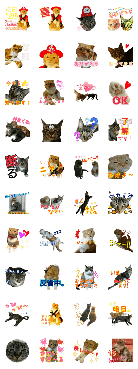 茶トラ猫の「きなこ」と キジトラ猫の「あんこ」のスタンプです