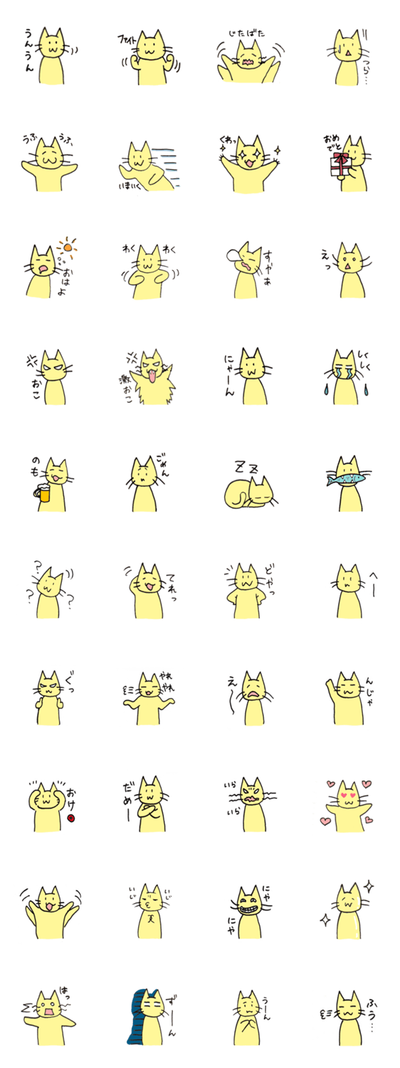 黄色い猫「もすけ」のスタンプです。日常会話にゆるっとどうぞ。