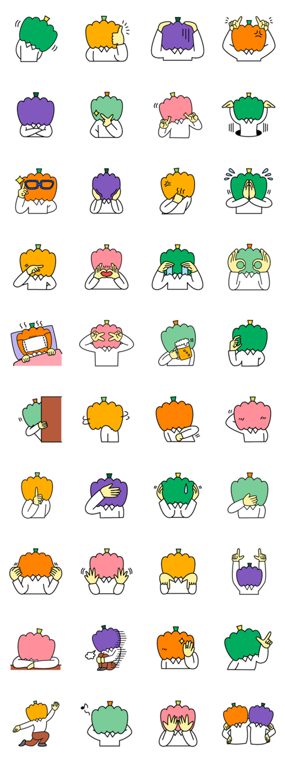 緊張したときは、相手をカボチャだと思えばいいんだよ。これを使えば、相手をビビらせずに済むかもしれない…よ?文字なしの便利なスタンプです。