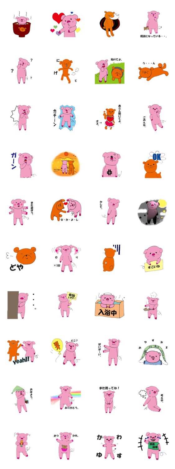ぶたまるとくまた動物のほっこりする日常を描いています。ぶたまるは陽気で愉快な可愛い豚です。くまたは無口な優しいドジな熊です。2人はとても仲良しです。