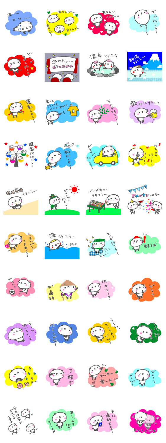 友達、彼氏、彼女に遊んでもらいましょう! パンダスタンプでかわいく誘ってみては? 女子会、飲み会、パーティー、野球、サッカー、映画、旅行 等のお誘いにぜひ!