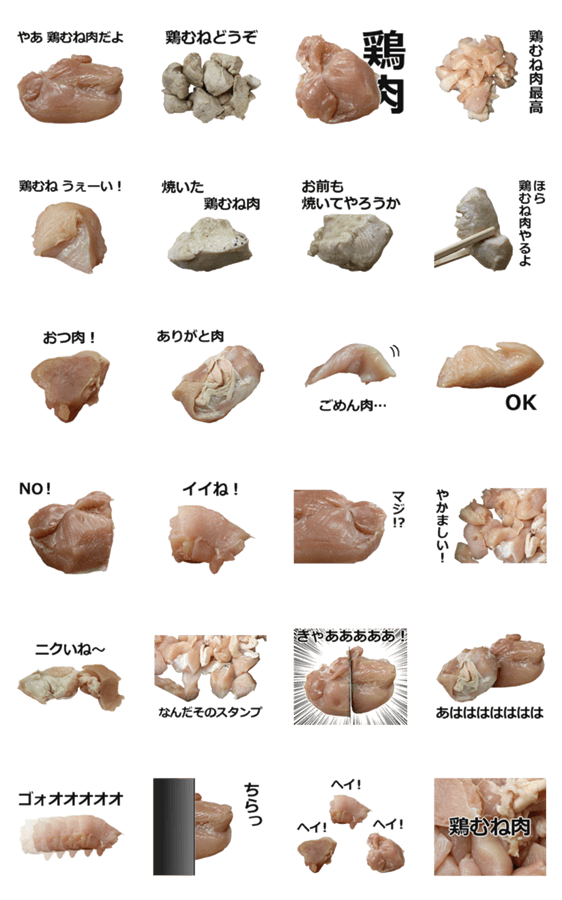 鶏胸肉の実写スタンプです。超高画質鶏むね肉をどうぞ。飯テロにも。国産です。