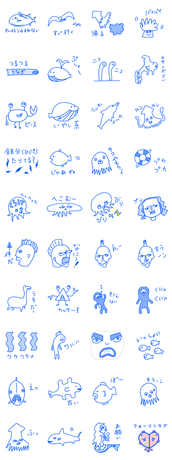 青ペンのイラスト。第2弾は、海の生き物のスタンプ。