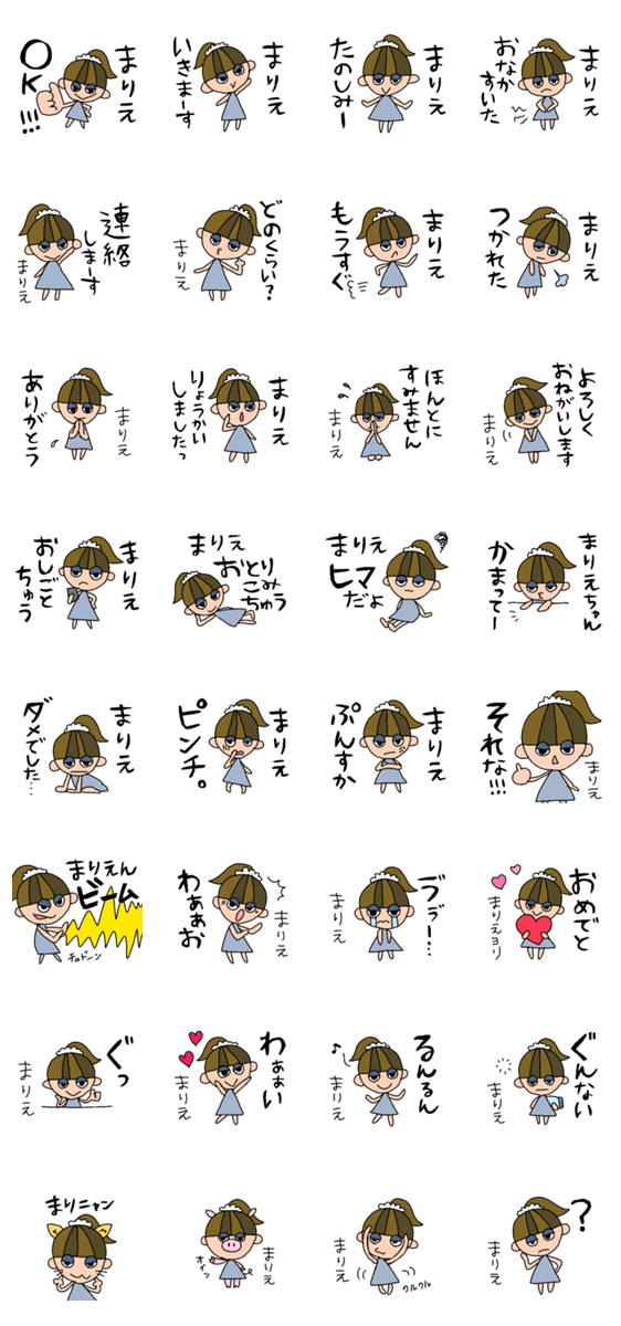 全国のまりえちゃんにおくる、マリエ専用スタンプ! おちかくのまりえちゃんへのプレゼントにも♪
