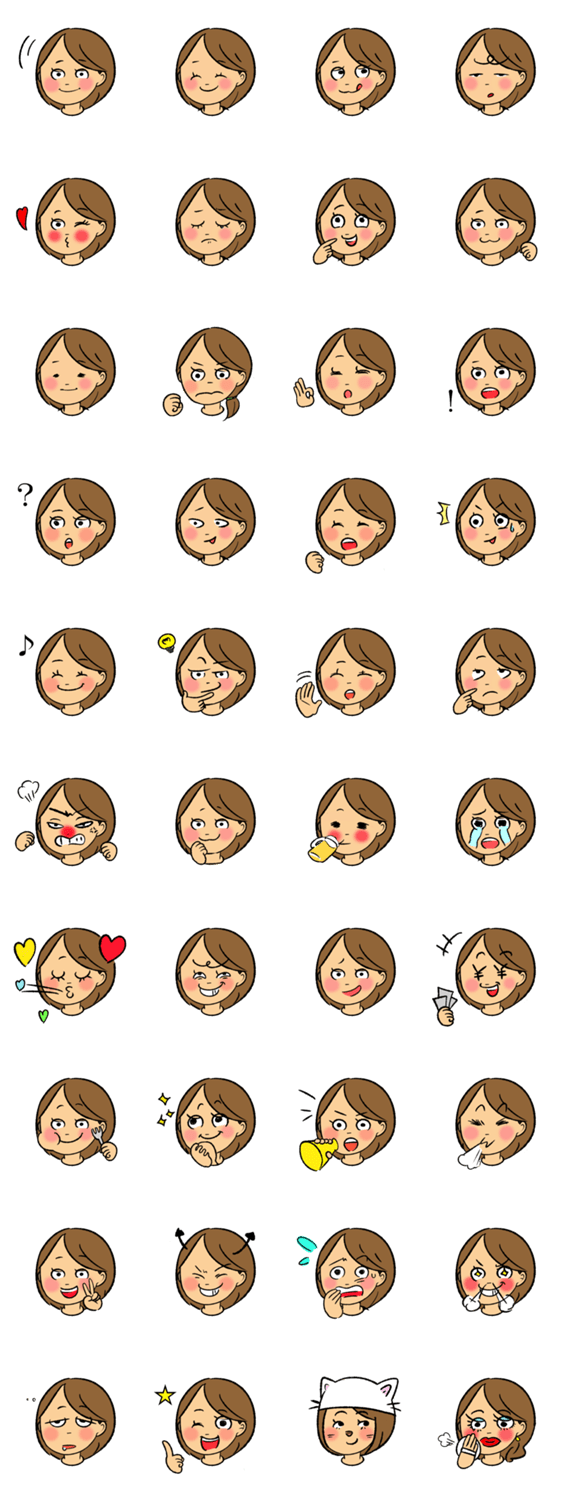 ボブヘアーの女の子スタンプです!自分に似ていたら活躍すること間違いなし♪
