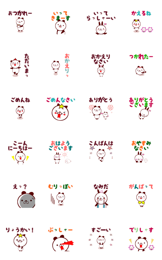 日常で使う挨拶です。デカ文字でひらがなで使えるよ。 ゆるいパンダがあいさつします。