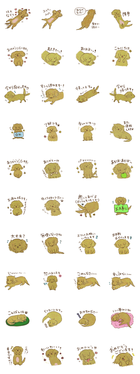 ミニチュアダックスフントの「のんちゃん」のスタンプです。人間顔負けの気遣いともふもふなお尻で送った人と送られた人を癒します。 ミニチュアダックスフンド/ 犬/可愛い