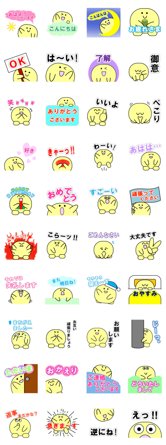 日常会話で使って欲しい、なんとなく優しい感じのスタンプです。よく使う言葉などで作りましたので、毎日使えると思います。