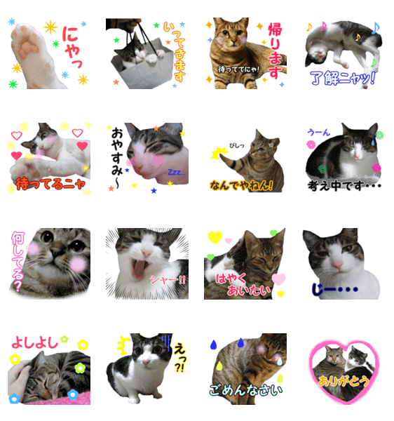 2匹の飼い猫、"うらりん"の写真スタンプです。 日常でよく使うセリフを集めました。